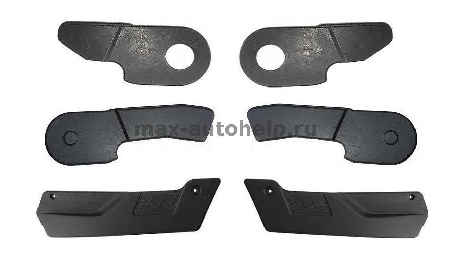 Облицовка планок брызговиков для автомобилей семейства Лада 4х4 - ВАЗ 2121, 21213, 21214, 21218, 2131 Нива Урбан/Легенд. В наборе 8 деталей на 4 брызговика. Номера по каталогу: 21213-8403330 - 1 шт. 21213-8403331 - 1 шт. 21213-8403032 - 2 шт.…