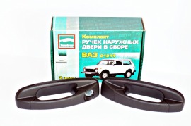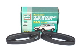 Комплект неокрашенных наружних евроручек в сборе фирмы "ТЮН-Авто" для автомобилей семейства Лада 4х4 - ВАЗ 2121, 21213, 21218, 2131 Нива с отверстием под личинку для ключа 2106 (старого образца). Вес 0,5 кг