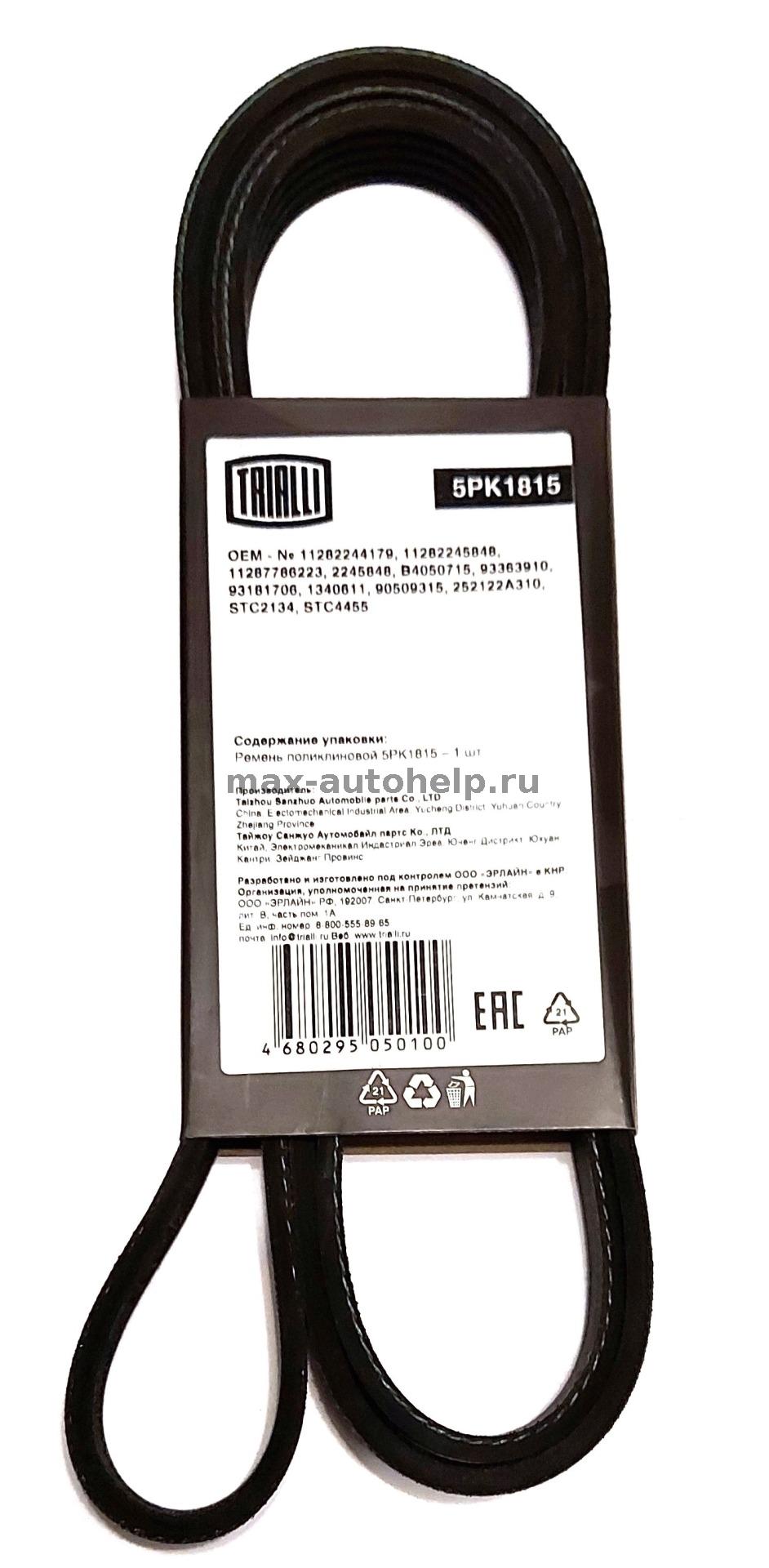 Ремень генератора и вспомогательных агрегатов поликлиновой 5PK1815 2123-1042010-30 ВАЗ 2123 "Шевроле Нива" под шкив помпы уменьшенного диаметра